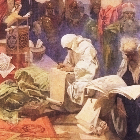 In 1991 I made my first trip to Czechoslovakia to perform at the International Music Festival in the ancient Moravian city of Brno. It was on a side trip to the nearby town of Moravsky Krumlov that I first saw Alfons Mucha’s series of epic paintings depicting the history of the Slavic world. The stories expressed in these 17 enormous unframed canvases were intriguing, but I was most inspired by his dazzling rendering of light, the hallmark of truly great artists. Five stood out and became my challenge to complete the transformation of their depictions of light into music.