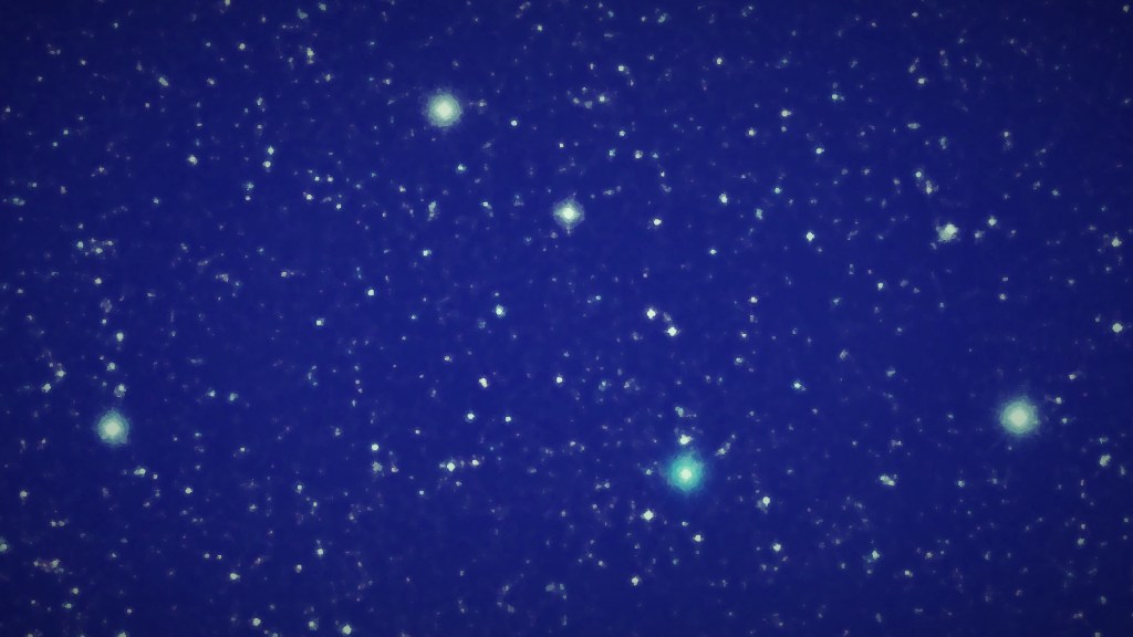 The music arose from tracing a map of its brightest points of light. The coordinates of these points on a two-dimensional graph were converted into time and pitch patterns articulating a grand sonority. The graph can be rotated, kaleidoscopically transforming the pattern into similar sonorities.