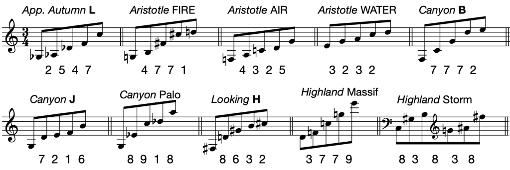 My modern-music composition e-book Mapping the Music Universe [2022] offers a set of composing experiments called MapLabs. Each provides lab instructions to gather material and make compositional choices, and each provides an example built step by step along the path of the lab instructions. The sample pieces for the first four MapLabs fit together here as the metaphorical elements fire, air, water, and earth, of Aristotle’s concept of the world’s physical matter.