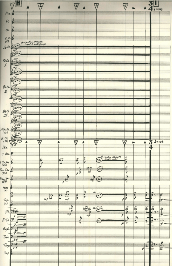 A chamber music piece titled Shores (TC-44) followed in 1978, which opened a new stream of writing for me with its completely non-metric time notation, bright arpeggiated pitch constellations, and oscillations animating the harmony and the texture.